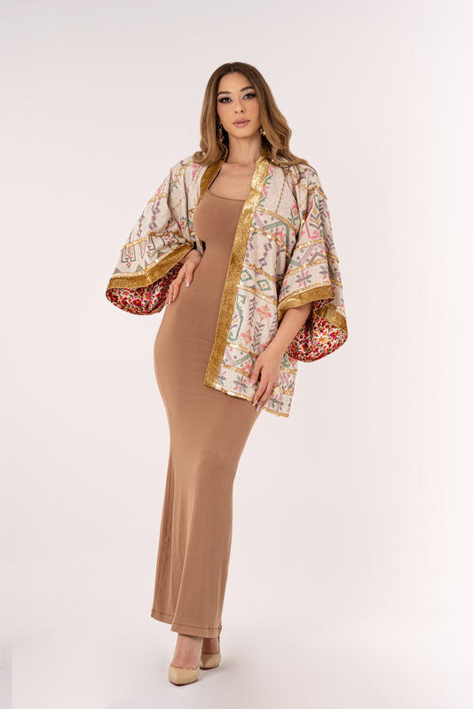 Isfahan - Long Silky Beige Kimono